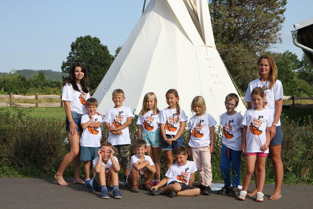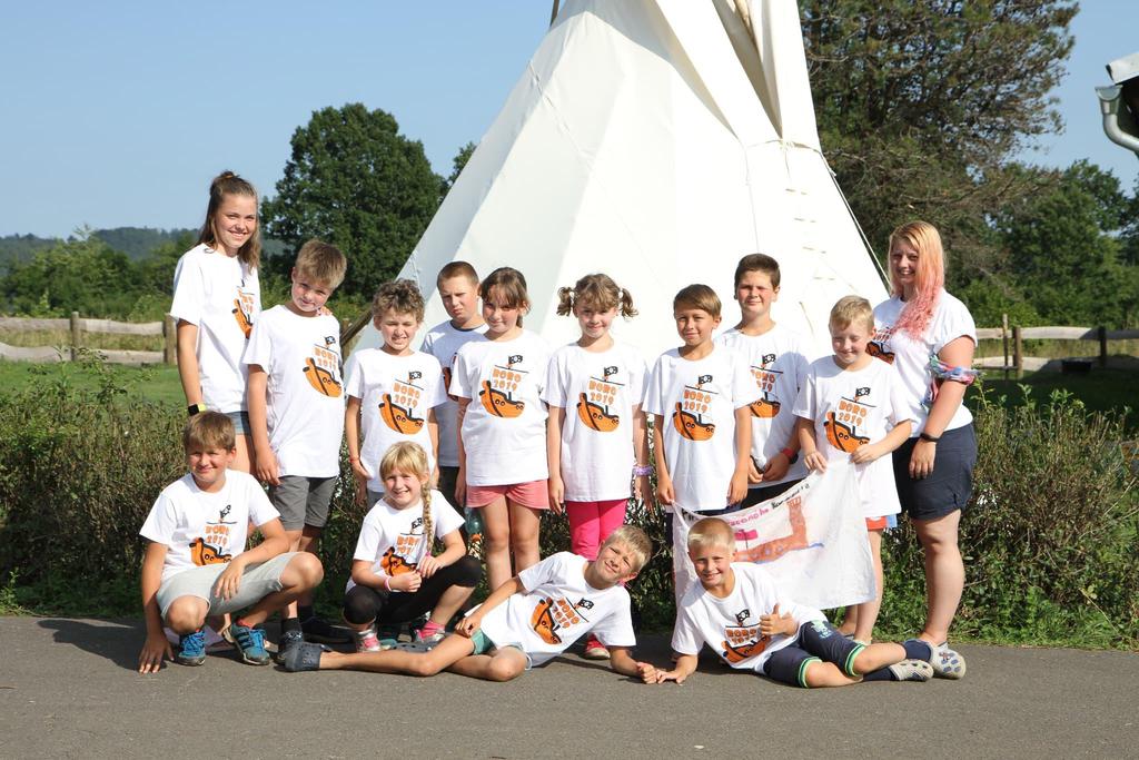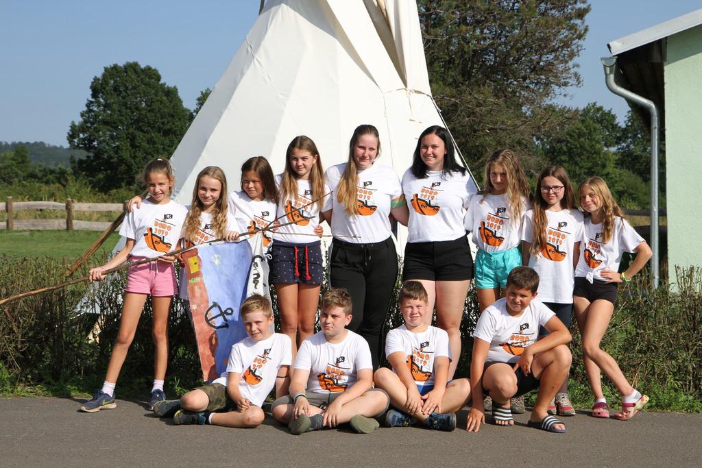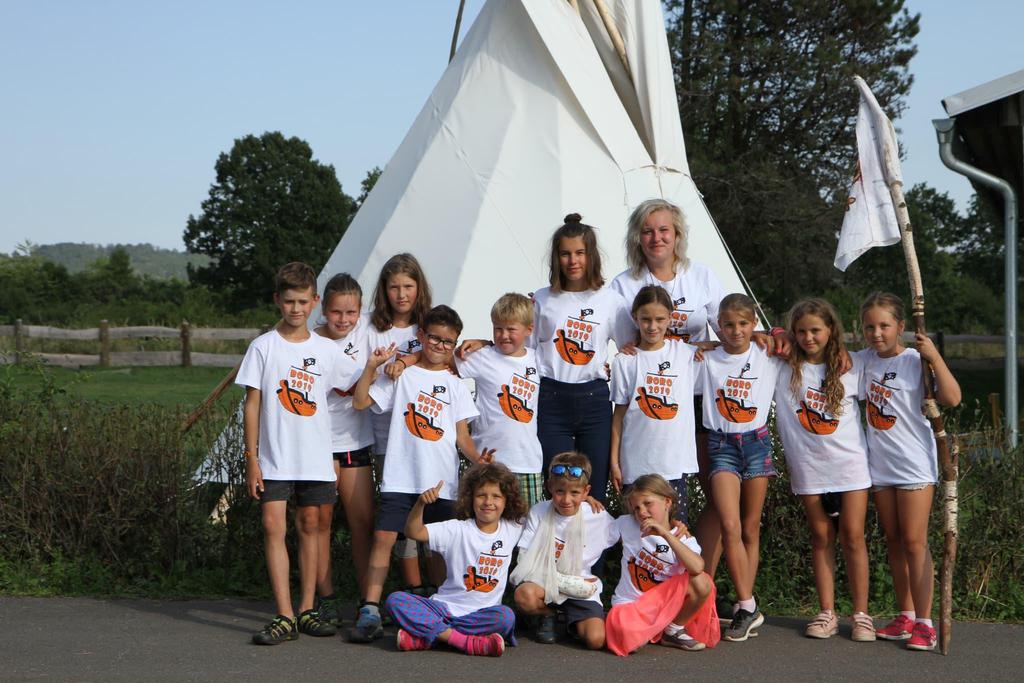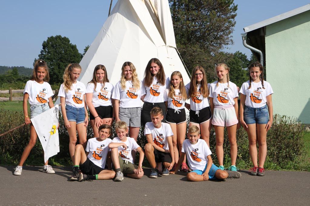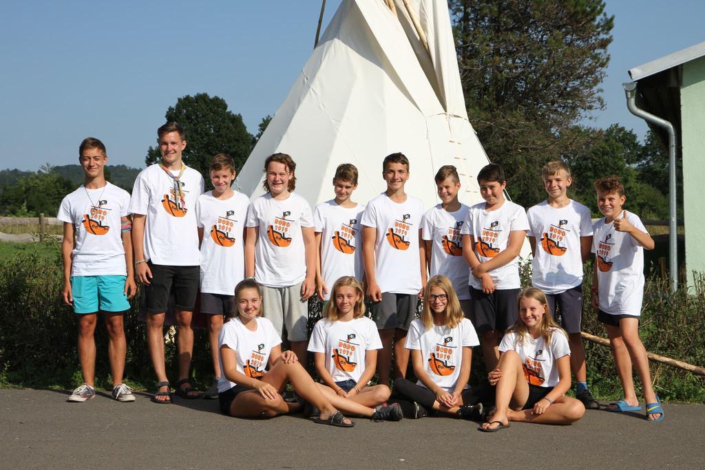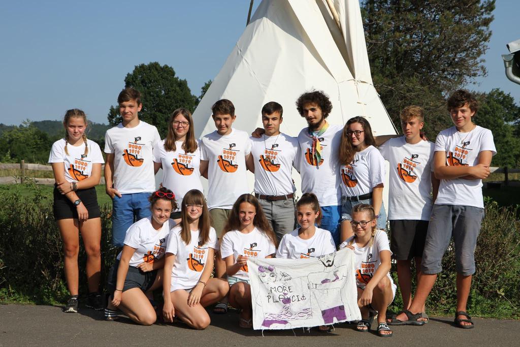 Ke každému táboru patří hromadné focení oddílů v nových táborových tričkách.