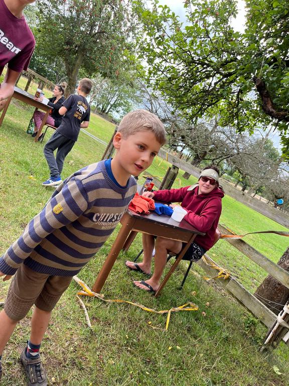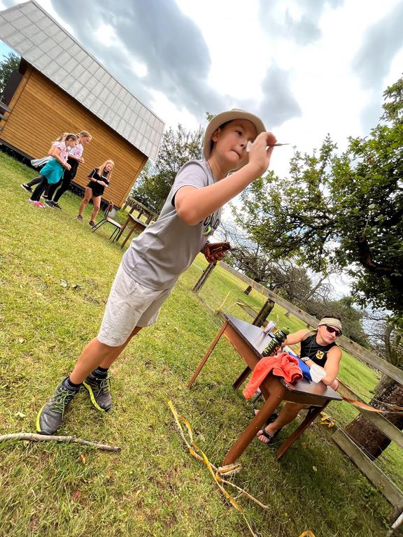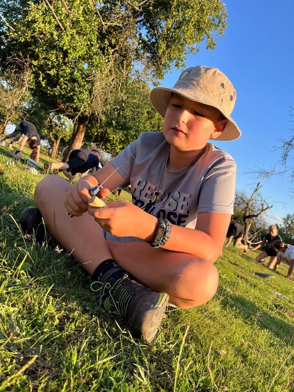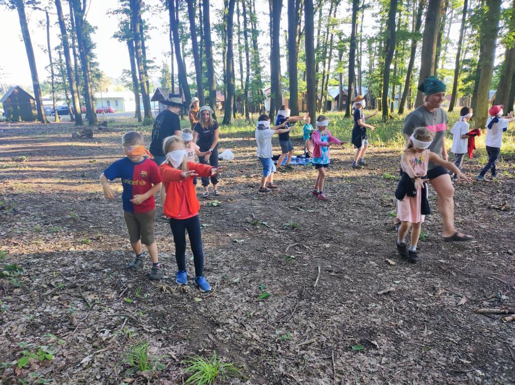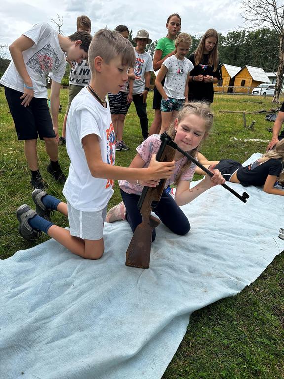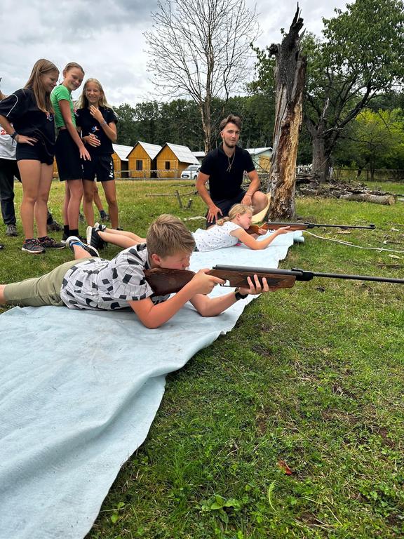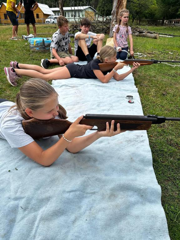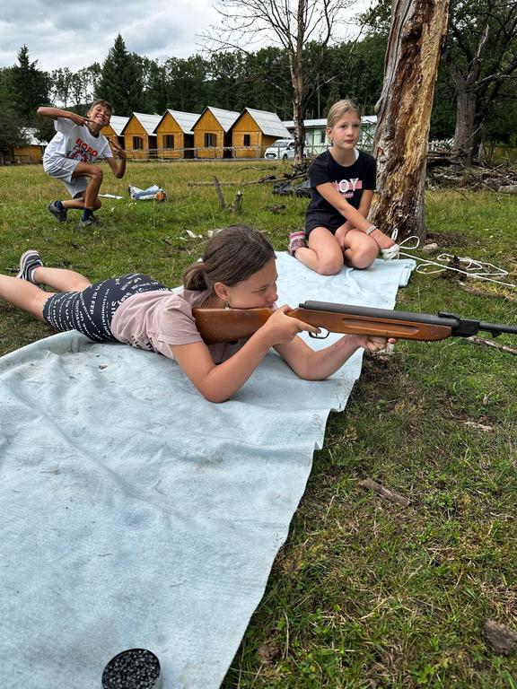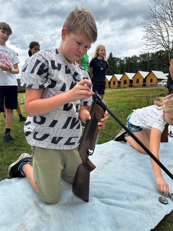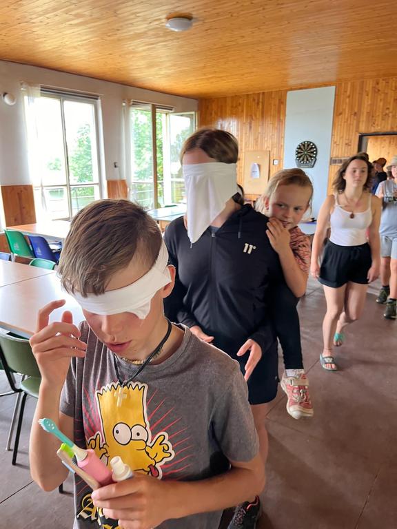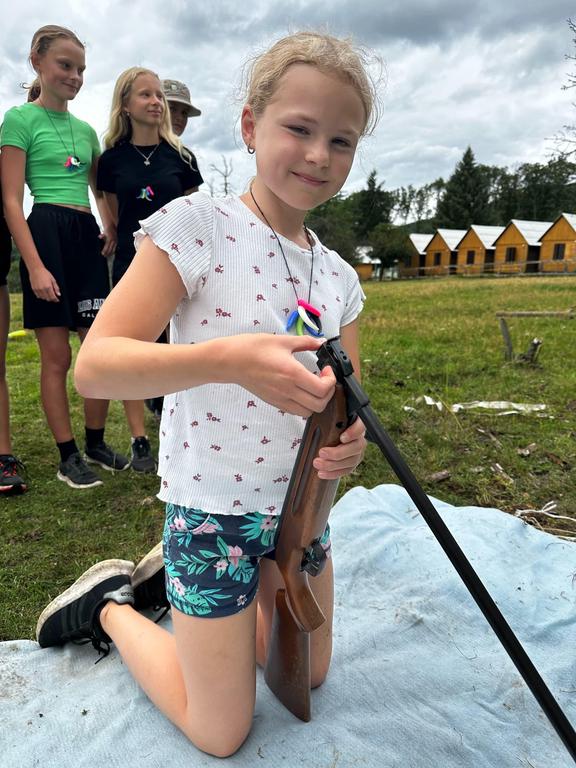 Děti si také vyzkoušely střílení ze vzduchovky a luku a šlo to i těm nejmenším. Pak několik oddílů postihlo neštěstí v podobě “dne trifidů” a mohli se zachránit jen když si ve trojicích, kde viděl pouze jeden, ruce mohl používat pouze druhý, vyčistili navzájem zuby, namazali chleba a snědli ho.