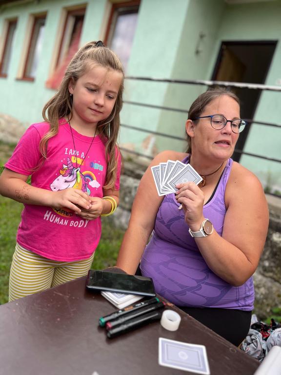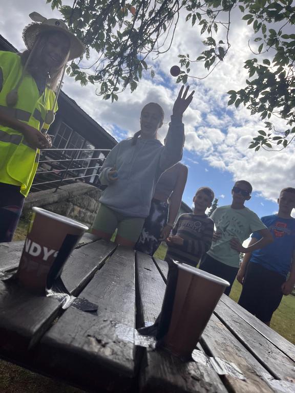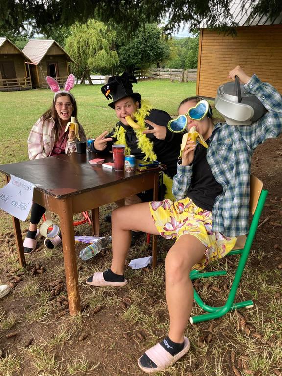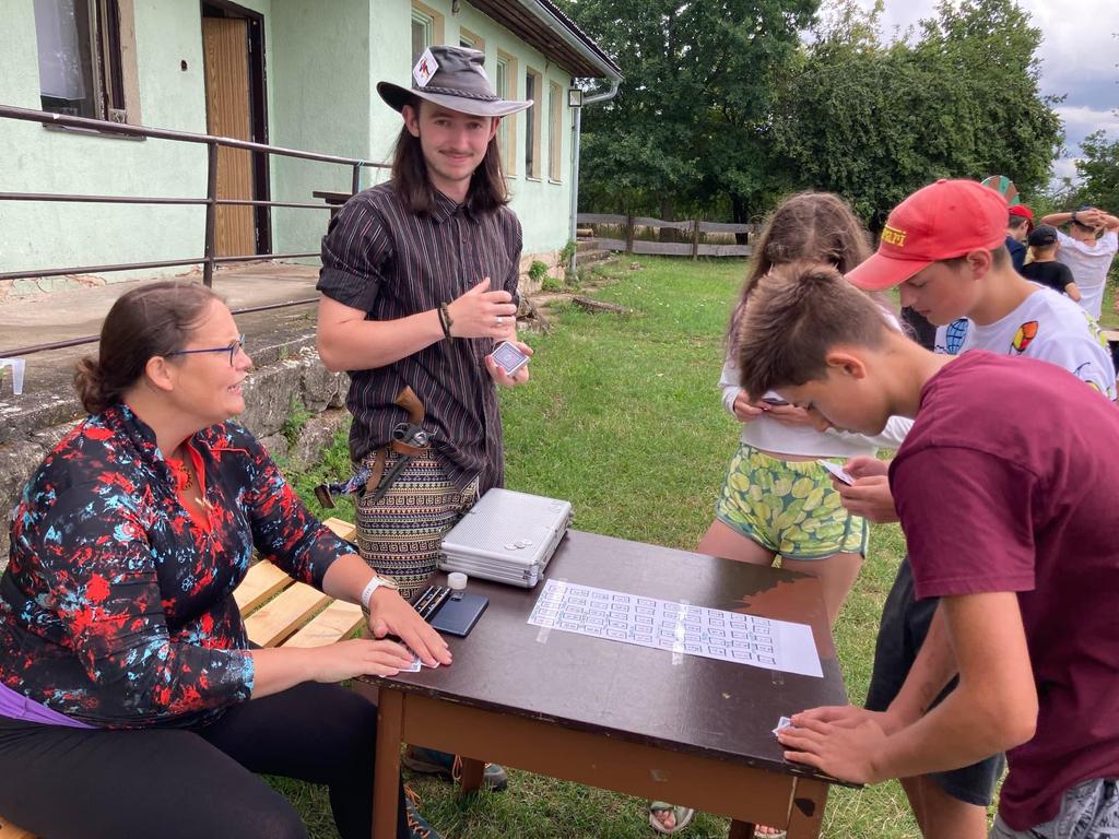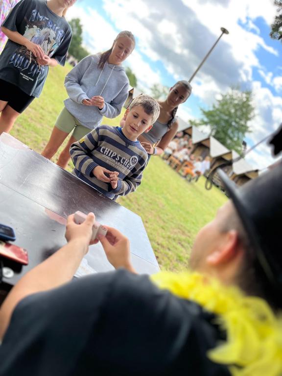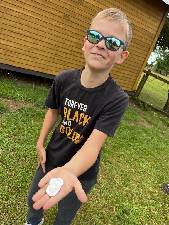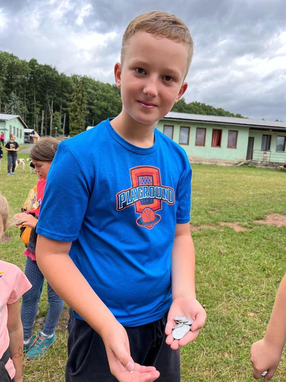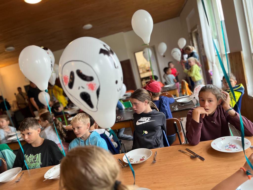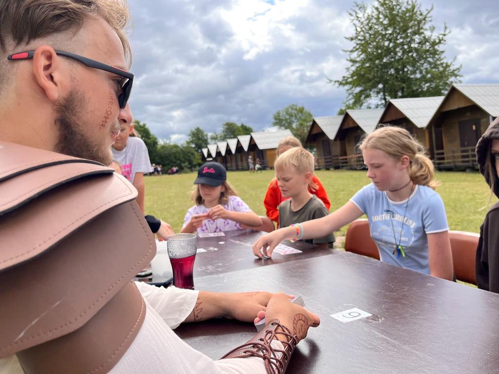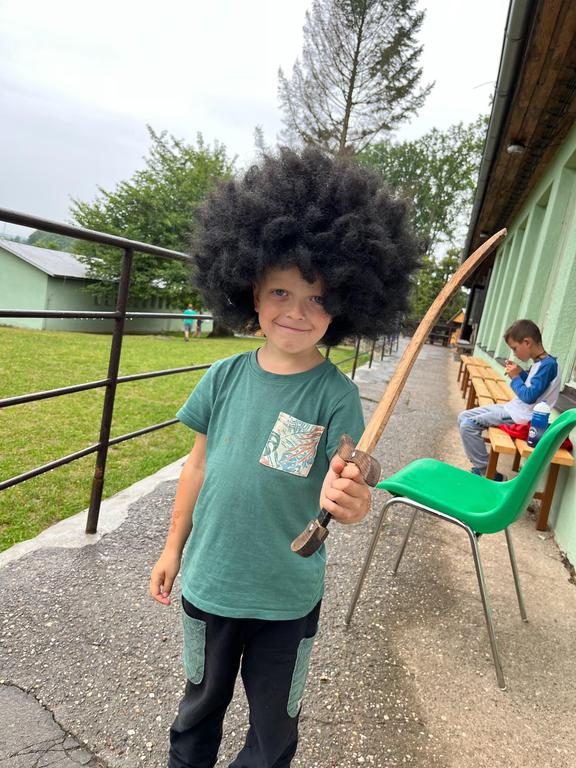 Ve čtvrtek už jsme se mohli těšit z přítomnosti sluníčka. Ráno jsme zahájili trochu gamblerských způsobem a z našeho tábořiště se stalo velké Casino, kde děti mohly vyzkoušet spoustu zábavných hazardních her jako ruletu, poker, tahání sirek a házení kostkami. Tomuto dopoledne nechyběl i zásah banditů, kteří vyloupili banku, ale nebojte, lupiči byli dopadeni a potrestání řádným způsobem.